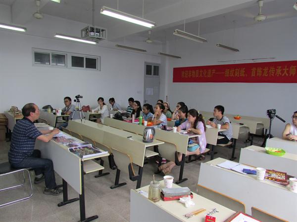 2014年5月26日下午,浙江省非物质文化遗产项目“首饰龙制作工艺”传承人林顺奎先生在人文楼410教室为财神捕鱼