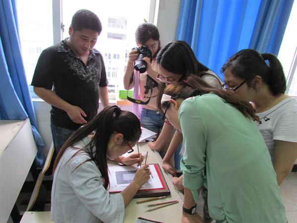最后,林顺奎、黄孟为大家现场表演了细纹刻纸的刻制技艺,不少同学纷纷拿起刻刀模仿体验。(郭重孟)