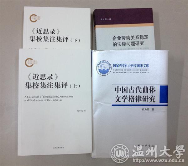 俞为民教授的著作《中国古代曲体文学格律研究》、程水龙博士的著作《〈近思录〉集校集注集评》喜获一等奖,盛爱萍教授的专著《瓯越语语汇研究》获得省政府三等奖。