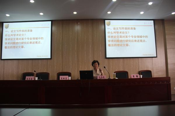 特别引进了著名学者、南京大学博士生导师孙蓉蓉教授为全体2013级研究生上第一堂课。孙教授所讲的主要内容是《学术论文的写作技巧》,主要分为三个部分:论文写作前的准备、论文写作过程、学术论文的特点。孙教授结合自己三十多年来的执教经历和写作学术论文的体验,生动地向大家阐述了什么是学术论文以及如何写作学术论文的问题,每一个问题都深入浅出、引人入胜。孙老师还与在座的同学进行了很好的沟通和互动,会场其乐融融又不失学术氛围。这一讲座正如一场“及时雨”,使即将开始研究生生活的同学们受益匪浅。