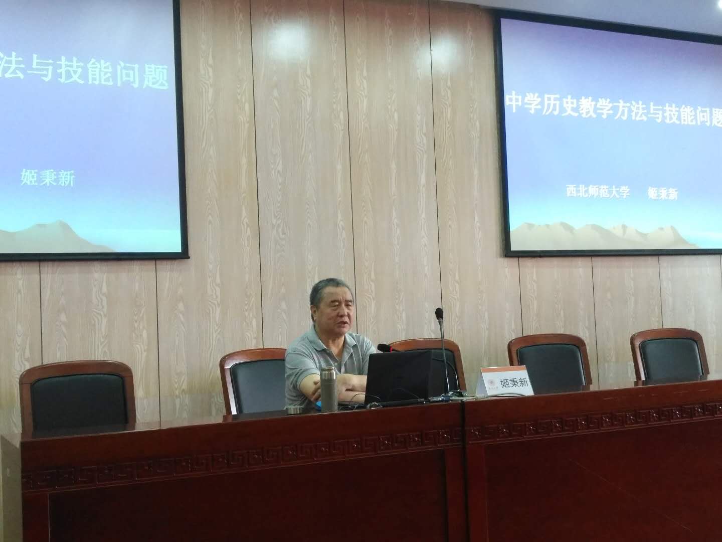 2018年9月27日星期四上午10-12点,西北师范大学博士生导师姬秉新教授在北校区人文楼203会议室对学科教学(历史)研究室和15、16级历本同学作了题为“中学历史教学方法与技能问题”的讲座。