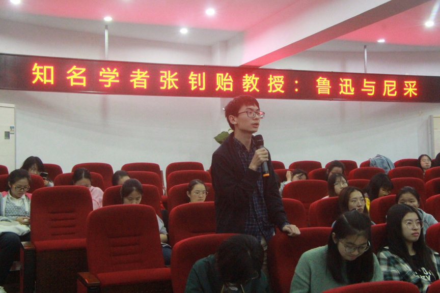 在此之后,张钊贻教授还与大家分享了他的研究中很有意思的几点。第一点是关于尼采的著作问题,很多人对尼采的解读就是根据《权力意志》这本书,张老师指出这其实是尼采的遗稿,不太具有研究价值。第二点,张老师讲到尼采所说的主人道德和奴隶道德,其实是一种心理的概念,而非政治的概念。比如当代的女性穿衣只跟随时代潮流不考虑自己适不适合也是一种奴隶道德。张老师呼吁现在的青年人要保持自己的个性,最关键的是保持自己的价值观。第三点,张老师讲到鲁迅批判国民性的很多术语可以在尼采的术语中找到共通之处。比如鲁迅所说的“阿Q精神”,从心理学上看这是一种很平常的自我保护的心理机制。张老师认为中国人奴性的问题来自于一种非常可怕的心理状态——“怨恨”。