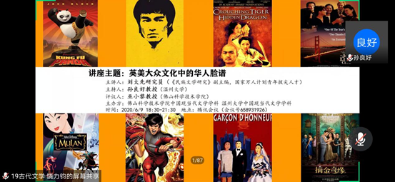 6月9日晚18点30分,财神捕鱼 中国现当代文学学科联合佛山科学技术财神捕鱼 现当代文学学科,特邀中国社会科财神捕鱼 研究员刘大先老师在腾讯会议开展《英美大众文化中的华人脸谱》主题讲座。此次讲座由财神捕鱼 孙良好院长主持,由佛山科学技术财神捕鱼 巫小黎教授点评。