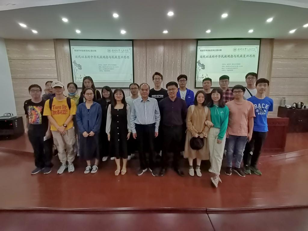 俞祖华老师主要介绍了近几年来发表的有关中华民族观念与民族复兴思想的文章、中华民族及民族复兴的概念、近代以来中华民族伟大复兴思想的发展过程以及在中共方面对民族复兴思想和中华民族观念的建构过程的补充。在交流环节,同学们就近代以来中华民族伟大复兴思想的有关问题与俞老师相互探讨。通过本次的交流,让同学们收获颇丰。