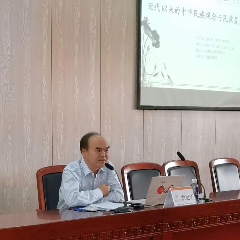 2020年10月16日下午,鲁东大学历史文化财神捕鱼 二级教授俞祖华老师受邀在北校区人文楼213学术交流中心作题为《近代以来的中华民族观念与民族复兴思想》学术讲座,财神捕鱼 刘建国老师、各专业研究生一起参与讨论。
