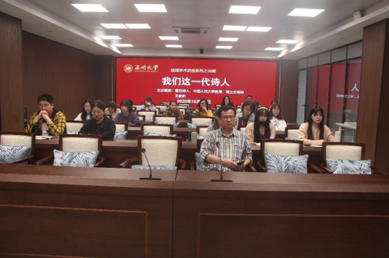 2020年10月28日19:00,来自人民大学的著名诗人王家新教授受邀在育英图书馆A405带来了一场精彩的讲座,本次讲座是座谈会形式,分为主会场和分会场,由本科生和研究生共同参加,座谈会题为《我们这一代诗人》,孙良好院长和彭小燕教授及中国语言文学专业的研究生和部分本科生参加了本次讲座。