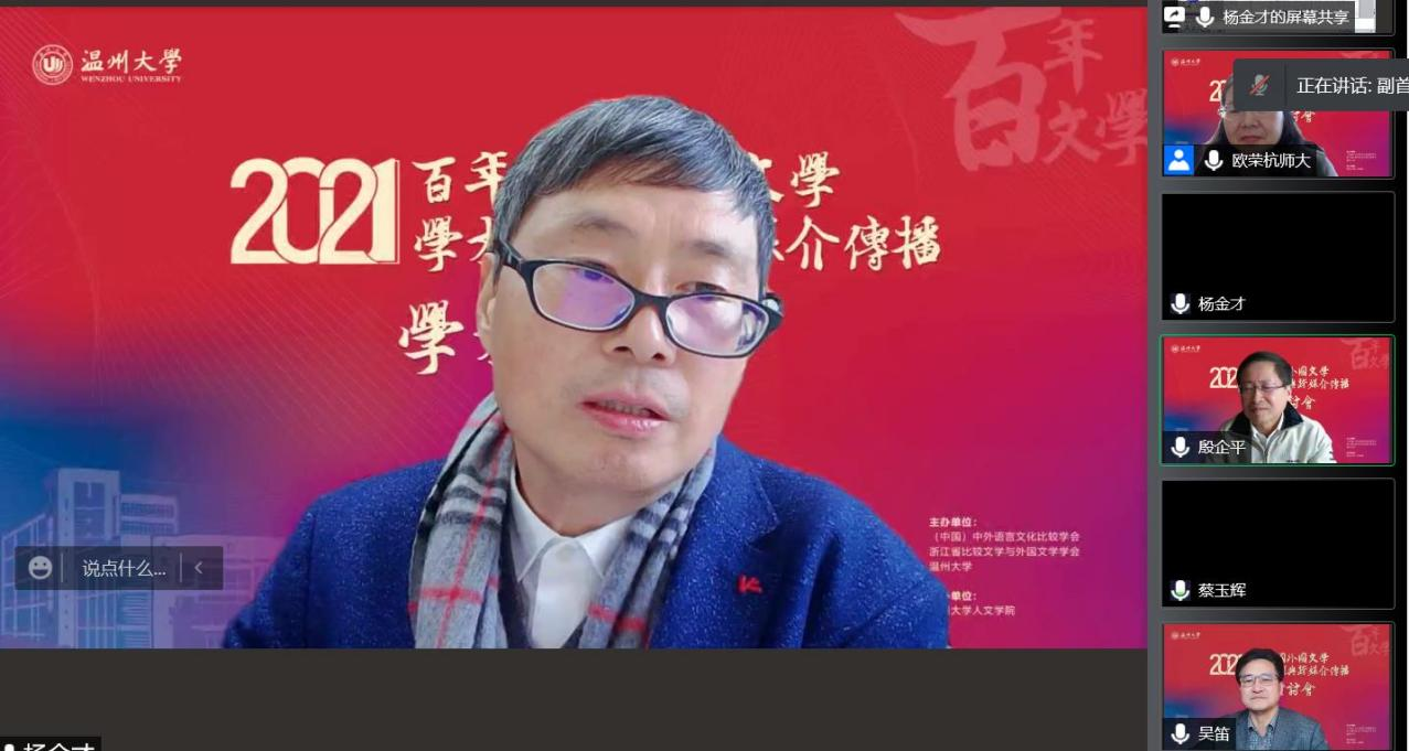 为顺应新时代中国特色社会主义的文化需要、探讨外国文学经典的跨语种跨媒介传播、总结我国外国文学研究的历史意义和学术贡献,(中国)中外语言文化比较学会联合浙江省比较文学与外国文学学会、财神捕鱼 等多家单位,于2021年11月27日联合主办“百年中国外国文学学术历程与跨媒介传播”学术研讨会。