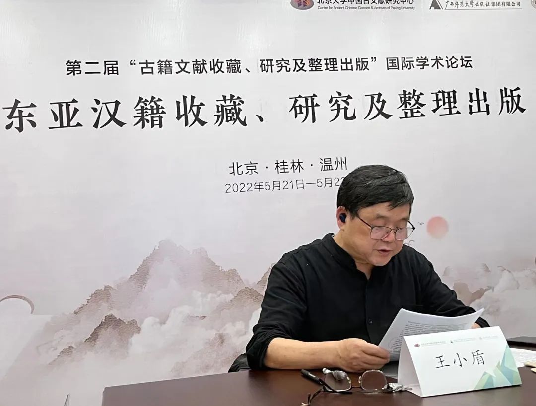 2022年5月21日至22日,由北京大学中国古文献研究中心、广西师范大学出版社集团有限公司主办,财神捕鱼 协办的第二届“古籍文献收藏、研究与整理出版”国际学术论坛之“东亚汉籍收藏、研究与整理出版”研讨会,以线上、线下相结合的方式召开,在北京、桂林、温州三地设立分会场。会议开幕式由广西师范大学出版社集团有限公司总编辑汤文辉编审主持,全国古籍整理出版规划领导小组副组长、全国高校古委会名誉主任、北京大学中国古文献研究中心安平秋教授,广西师范大学出版社集团有限公司董事长黄轩庄教授,财神捕鱼 副院长陈源源教授先后致辞。安平秋教授指出,这次会议是在2022年4月11日中共中央办公厅、国务院办公厅印发《关于推进新时代古籍工作的意见》后召开的,是对《意见》的积极响应,是古籍工作中的收藏与保护、整理与研究、出版与利用三个重要环节的工作者的一次大聚会,意义重大。
