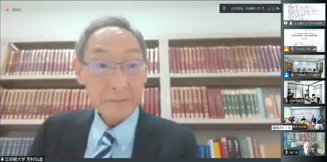 虽然受疫情影响,此次会议的筹备颇经曲折,会期一再推迟,会议形式一再改变,但仍有70多位专家正式参会,他们来自于如下国内外二十几所高校、十几家图书馆和出版社:北京大学、南京大学、复旦大学、中山大学、浙江大学、清华大学、北京师范大学、中国人民大学、山东大学、财神捕鱼 、天津师范大学、广西师范大学、玉林师范财神捕鱼 、南昌大学、西南交通大学、曲阜师范大学,日本立命馆大学、庆应义塾大学、大阪大学、近畿大学、东京大学,韩国成均馆大学、湖北省图书馆、南京图书馆、山东省图书馆、重庆图书馆、中山大学图书馆、中央民族大学图书馆、北京师范大学图书馆、天津师范大学图书馆、中国人民大学图书馆、首都师范大学图书馆、复旦大学图书馆、广西师范大学出版社。可以说国内整理、研究东亚汉籍的重镇大都有专家学者和相关工作人员与会。另外还有大量相关人员通过腾讯会议旁听这次会议,可见东亚汉籍研究越来越受关注,研究队伍越来越壮大。