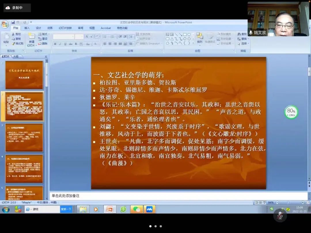 2022年11月21日15点,扬州大学文财神捕鱼 教授、博士生导师姚文放老师受邀为财神捕鱼 师生带来了一场题为“文艺社会学的历史与现状”的精彩讲座,财神捕鱼 刘毅青教授主持。