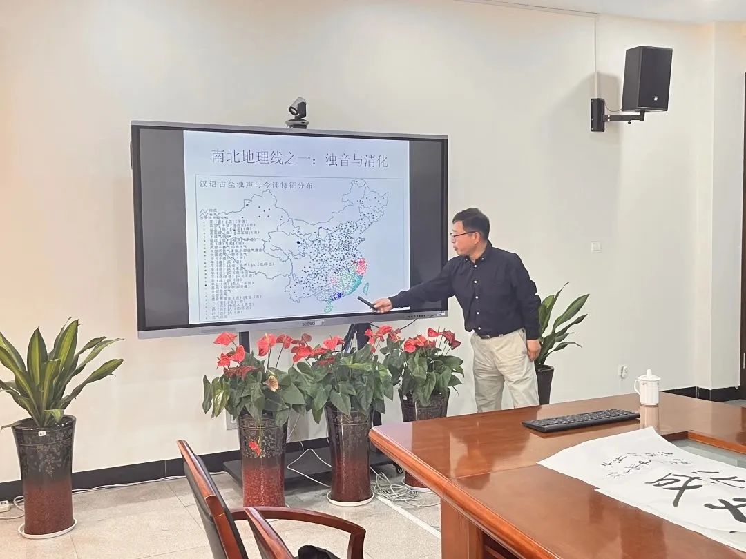 张教授在谈到同言线与汉语方言分区标准时指出,一些学者往往将语言的区域差异性看作地理上的“连续统”,在语言地理“连续统”的两个极上,方言的地域差异还是很明显的,而方言地理线往往是由语言的一系列特征聚合而成,这些特征涉及到语音、词汇、语法等要素,由某一语言特征所构成的方言地理分界线又称“同言线”或“等语线”。而上述地理分区的差异有的是由材料的粗细引起的,有的是由不同的分类标准引起。随后张教授对各个方言地理学家的分区标准进行了详细解读,并最终引出了个人对汉语方言三条南北地理线的认识。