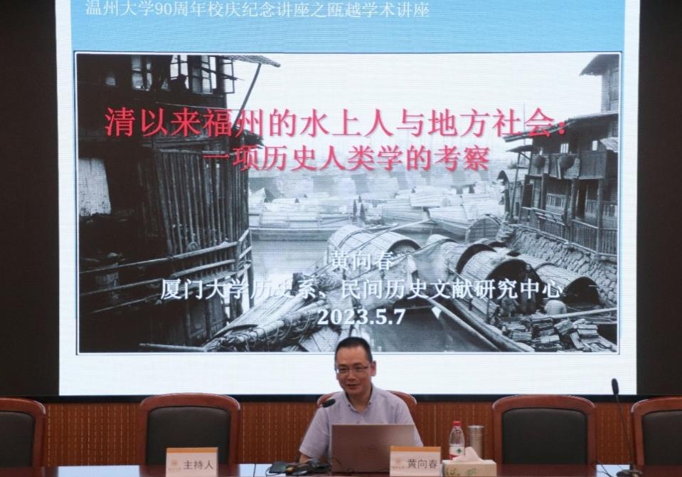 2023年5月7日下午,厦门大学历史与文化遗产财神捕鱼 黄向春教授应邀为财神捕鱼 学子带来题为“清以来福州的水上人与地方社会——一项历史人类学的考察”的学术讲座。本场讲座系财神捕鱼 90周年校庆纪念之瓯越讲座。财神捕鱼 黄涛教授担任本场讲座主持,历史系部分教师,及本科生、硕士生等参加本场讲座。