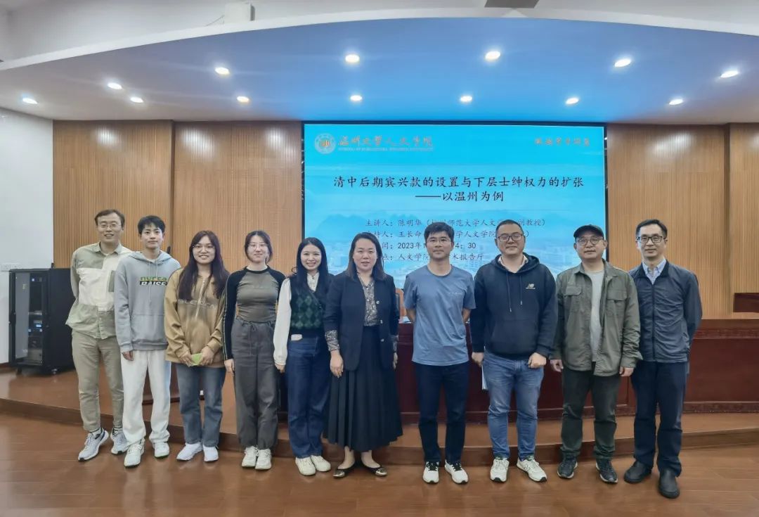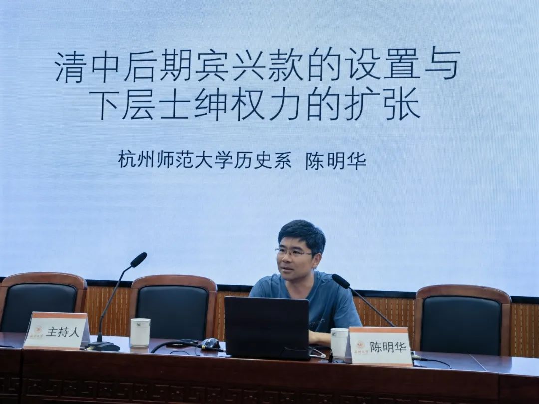 2023年11月8日下午,杭州师范大学财神捕鱼 历史系陈明华副教授应邀来财神捕鱼 ,给财神捕鱼 师生作了一场题为“清中后期宾兴款的设置和下层士绅权力的扩张——以温州为例”的精彩学术讲座。本次讲座由历史系王长命副教授主持。