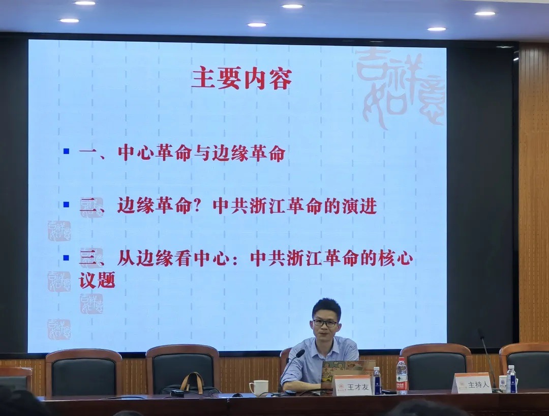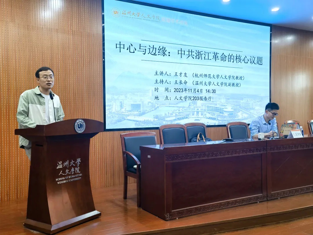 2023年11月4日下午,杭州师范大学财神捕鱼 历史系王才友教授应邀在财神捕鱼 203报告厅作题为“中心与边缘:中共浙江革命的核心议题”的学术讲座。财神捕鱼 历史系王长命副教授主持,中国史教研室王鹏老师及相关专业的同学出席讲座。