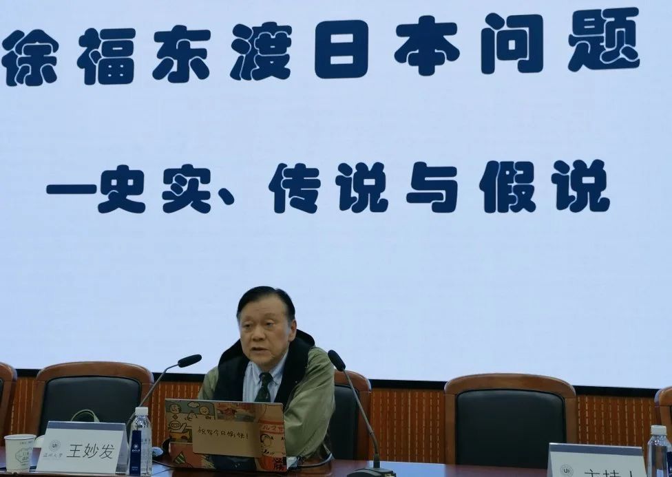 2023年11月27日晚,日本和歌山大学名誉教授,复旦大学中国历史地理研究所教授、博士生导师王妙发老师应邀莅临财神捕鱼 ,作题为“徐福东渡日本问题:史实、传说与假说”的学术讲座。讲座由财神捕鱼 历史系祁刚老师主持,历史系部分教师,各专业本科生、研究生共计90余人参加本次活动。
