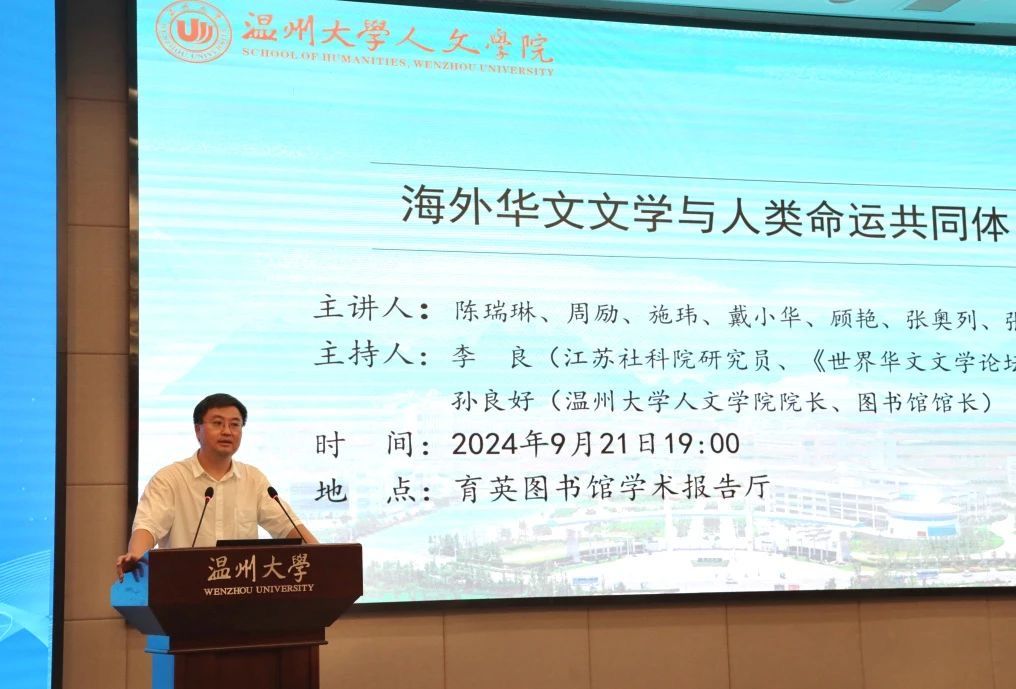2024年9月21日晚,七位知名海外华文作家陈瑞琳、周励、施玮、戴小华、顾艳、张奥列、张群在财神捕鱼 育英图书馆学术报告厅作了一场题为“海外华文文学与人类命运共同体”的精彩讲座。此次讲座由财神捕鱼 院长、图书馆馆长孙良好教授和江苏省社会科财神捕鱼 研究员、《世界华文文学论坛》主编李良共同主持。