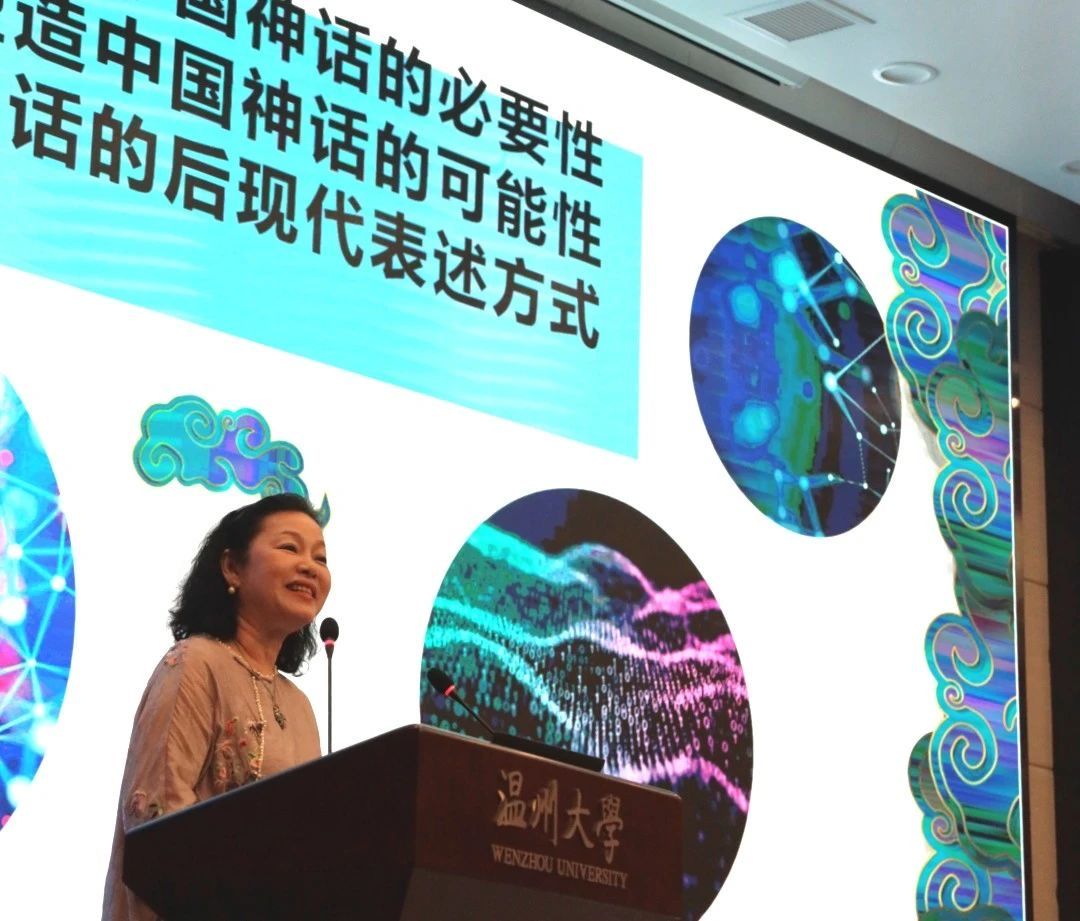 美国华人作家施玮以神话为主题,带来了题为“中国神话与人类精神的共同起源”的演讲。她论述了重新解读中国神话的必要性,在她看来,具有重大价值的中国神话是中华文化的底层构架,重新解读中国神话,可以从根本上纠正三观的形成与发展,达到非冲突性改善文化土壤的效果。她进一步说明了重新塑造中国神话的可能性。结合自身的研究成果与规划,施玮重点探究了中国神话的后现代表述方式,她认为重新塑造中国神话需融入时代特性和科技手段,可将研究以故事文本的方式呈现,从而进一步将神话搬上银幕,打造神话游戏、IP等。