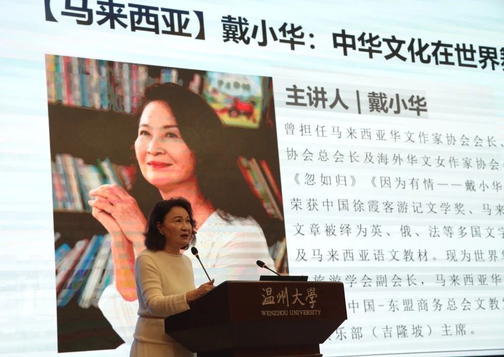 马来西亚华人作家戴小华发表了题为“中华文化在世界舞台的意义”的讲演。她从自我独特的人生成长经历出发提出何处是家园的疑问,并在生活和书籍中寻找答案,她得出了中华文化才是精神家园的答案。她向同学们介绍了马来西亚华文写作存在过的困境、突围与继续发展的难点。对于马华文学的未来前景,戴小华认为马华文学的危机不仅限于政治制约,文学本身的发展也迎来考验:在实用功利主义风靡的时代,人们容易忽视文学自身的价值和意义,传播界革命的到来更是让文学成为了商品的载体。对于文学的未来,戴小华认为ChatGPT无法真正做到书写人类的故事和精神,文学依旧有其存在的独特意义。