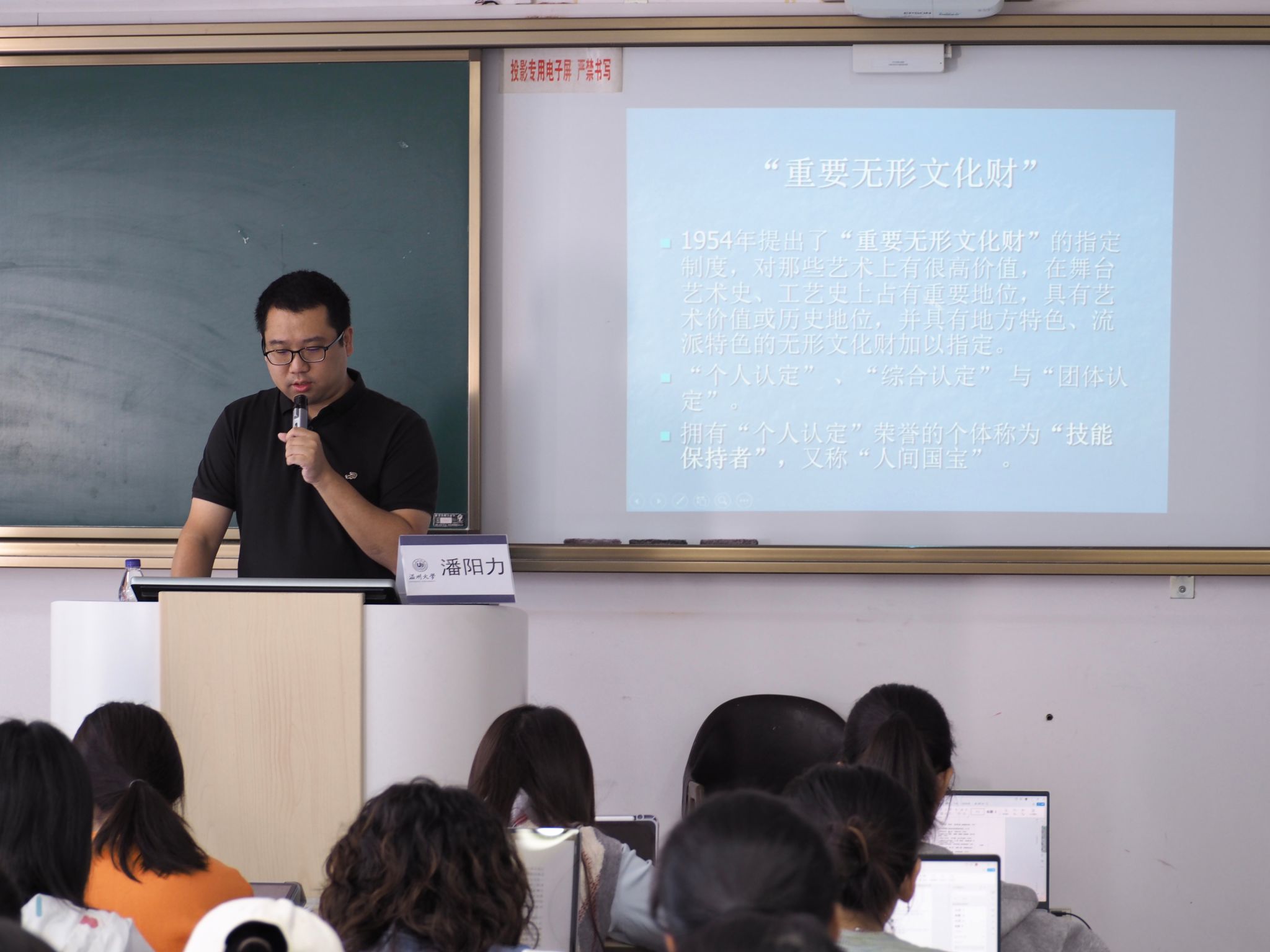 讲座在温馨而热烈的氛围中拉开序幕。潘研究员首先深情回顾了自己在财神捕鱼 求学的宝贵时光,感慨万分,并寄语在座的学弟学妹们珍惜大学时光,努力学习,追求卓越,不断攀登学术高峰。随后,潘研究员从非物质文化遗产的定义入手,深入浅出地介绍了非遗的由来、国际国内的发展历程以及非遗的十大门类等基础知识,帮助同学们从宏观角度全面把握非遗的精髓。紧接着,他从微观视角聚焦温州地方的非遗,通过详实的数据和生动的图片,将温州当前在册的非遗项目进行了可视化展示,让同学们对温州非遗的数量和分布有了直观而深刻的认识。