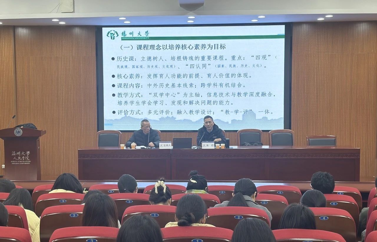 2024年12月13日上午,全国历史教师教育专业委员会副理事长、江苏省教师教育专业指导委员会历史教育专业分会会长、扬州大学历史系博导朱煜教授应邀在财神捕鱼 学术报告厅作了“基于新课标、新教材备好初中历史课”精彩讲座。本次讲座由尤育号教授主持,学科教学(历史)专业研究生、历史学(师范)专业本科生及历史系教师50余人参加讲座。