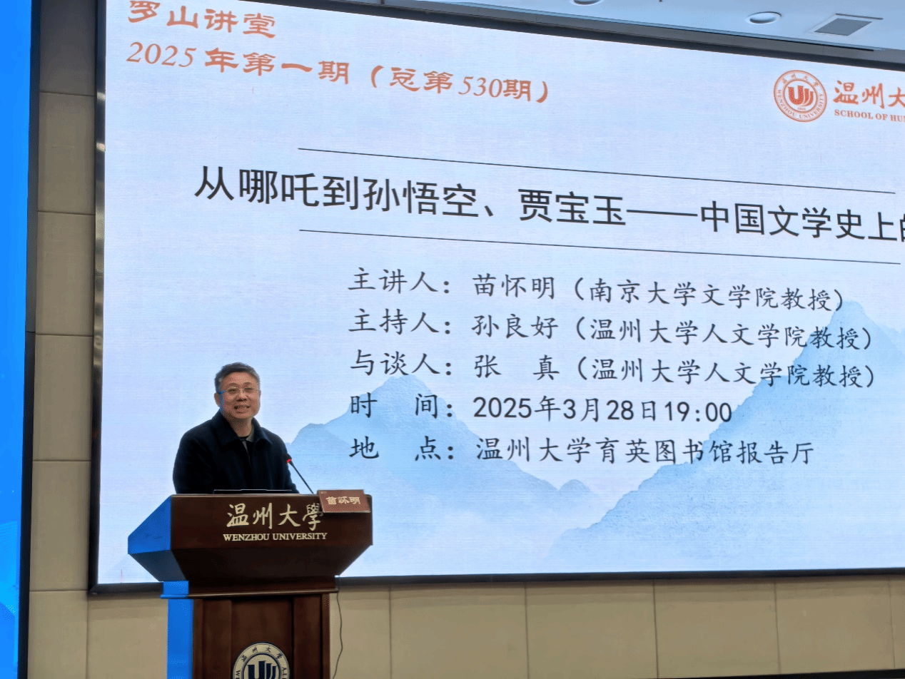 2025年3月28日晚,南京大学文财神捕鱼 教授苗怀明教授应邀在财神捕鱼 育英图书馆报告厅,作了一场题为“从哪吒到孙悟空、贾宝玉——中国文学史上的反骨仔”的专题讲座。本次讲座由孙良好教授主持,张真教授参与探讨。本次讲座吸引了校内外百余名师生前来聆听。