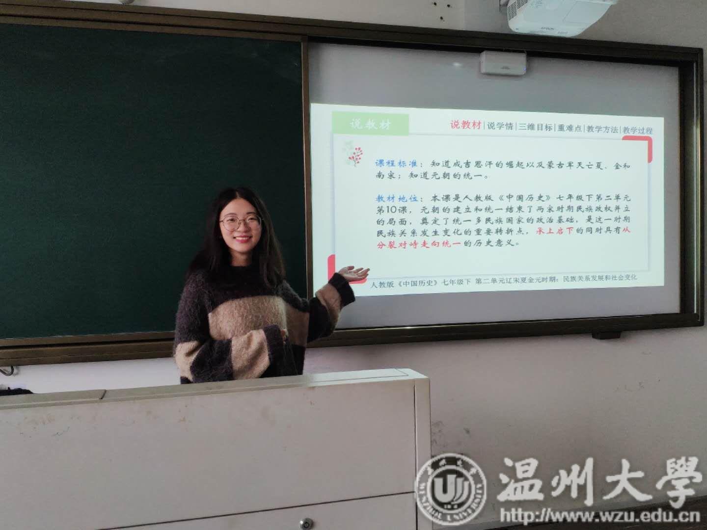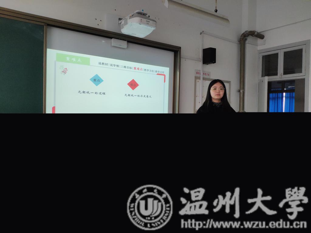 在前期分散自主研习的基础上,12月24至26日的校内集中研习分三个模块展开。第一模块,观摩四位温大历史系优秀代表的优质课并集中研讨。观摩了12历本赵洵颖学姐的优质课——《卓尔不群的雅典》,15历本三位优秀代表周文博、王颖、徐历君同学也分别进行了精彩说课和片段教学。研讨环节中,同学们各抒己见,借鉴学习、取长补短。第二模块,分别观摩嘉善中学、桐乡高级中学两位名师《甘地》一课的教学录像,在同课异构的观摩和研讨中,同学们感受到教学设计的灵活性、巧妙性,同时也深刻体会到:要做好一份教学设计,应以对文本的深刻解读为基础,在理清逻辑关系后,立足学情,以课标为依据,利用平时积累和多种教学资源进行教学设计。第三模块,优秀毕业生代表13历本黄欢学姐作了《成为未来教师之路》的精彩讲座,黄欢学姐分享了自己的教师成长经验,在求职和就职准备等方面为我们解惑答疑,让我们明白日常积累和主动求知的重要性,让我们相信:天道酬勤、功不唐捐,幸运总是留给有所准备的人。