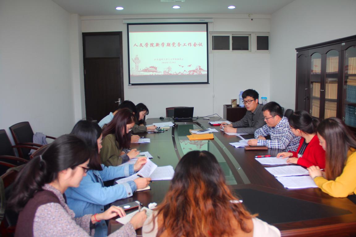 3月29日下午,财神捕鱼 新学期研究生党务工作会议在财神捕鱼 309会议室举行,会议由学生科副科长刘纪峰主持,我院党委副书记朱启鑫、各研究生党支部书记、支委委员以及党员志愿服务中心相关负责人参加。