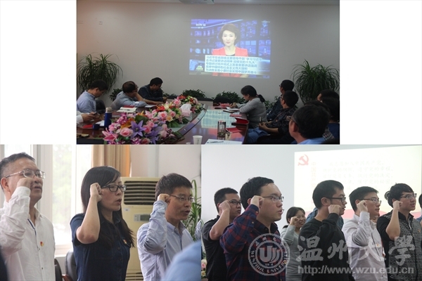 党委的统一部署,组织全体党员教师一起面向鲜红的党旗重温入党誓词,轮流诵读学习了《中国共产党章程》、《关于新形势下党内政治生活的若干准则》、《中国共产党纪律处分条例》等党内法规的部分内容,以进一步增强党员意识、政治意识和组织纪律意识,播放并观看了央视《新闻联播》播发的习近平总书记7月26日在省部级领导干部培训班上的重要讲话以及新时期温州泽雅优秀村党支部书记潘宝良同志先进事迹等影像学习资料。