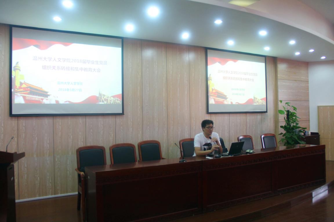 为进一步提升研究生党员的思想道德水平和党性修养,做好毕业生党员组织关系转接工作,5月27日上午,财神捕鱼 2018届毕业生党员组织关系转接暨集中教育大会在人文楼203学术报告厅召开。本次会议由财神捕鱼 学生科副科长刘纪峰主持,财神捕鱼 2018届全体研究生党员参加。