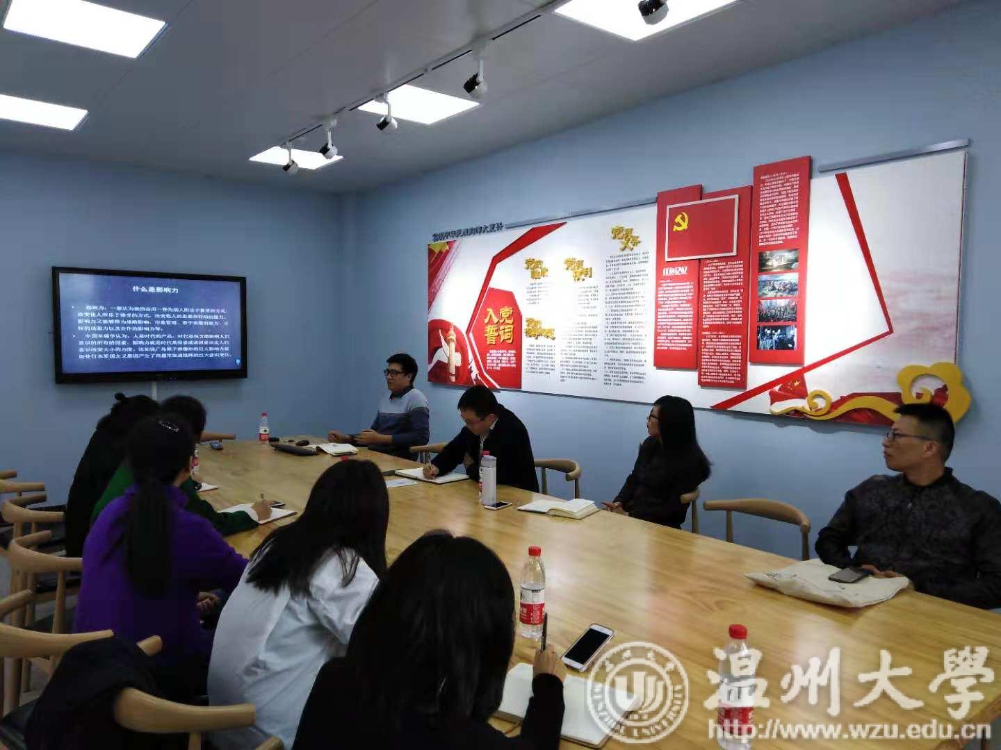 接下来,支部书记刘纪峰同志跟大家分享了书籍《影响力》,并就书中所提到的六大原理——互惠原理、承诺和一致原理、社会认同原理、喜好原理、权威原理以及短缺原理如何在工作和生活中运用起来一一例举。最后,江萍同志从“一面高扬旗帜、双面政客人生、三类为官之道和四种清醒认识”的角度跟大家分享了反腐小说《人民的名义》,并指出“只要我们心存正义、不懈奋斗,就一定能够发展好我们的教育事业,造福好我们的人民。”