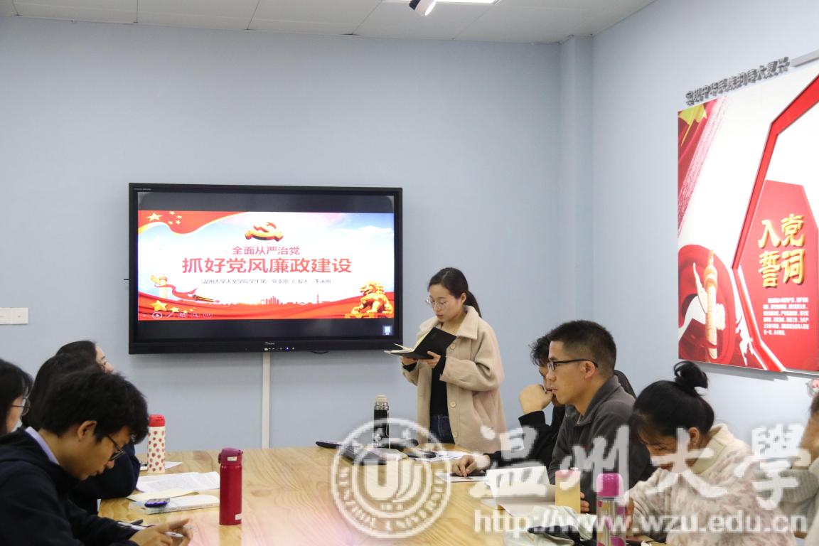 2018年12月23日下午3点半,财神捕鱼 学生第一党支部和第二党支部携手“星火·薪传”党员志愿服务中心之国情党史宣讲团,于北校区外语楼221党员之家会议室举办了“全面从严治党,抓好党风廉政建设”主题党日活动。活动由财神捕鱼 学生第二党支部书记陈赛君主持,学生第一党支部部分党员、第二党支部全体党员和国情党史宣讲团成员参加了本次活动。