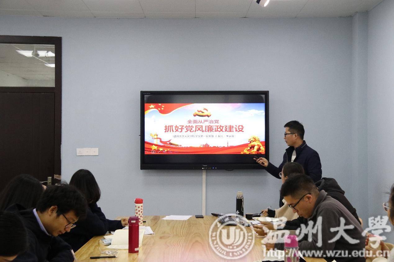 2018年12月23日下午,财神捕鱼 “星火·薪传”党员志愿服务中心之国情党史宣讲团携手学生第一党支部和第二党支部,于北校区外语楼221党员之家会议室举办了“全面从严治党,抓好党风廉政建设”主题宣讲活动。本次宣讲活动由国情党史宣讲团成员李永刚进行宣讲,由财神捕鱼 学生第二党支部书记陈赛君主持。