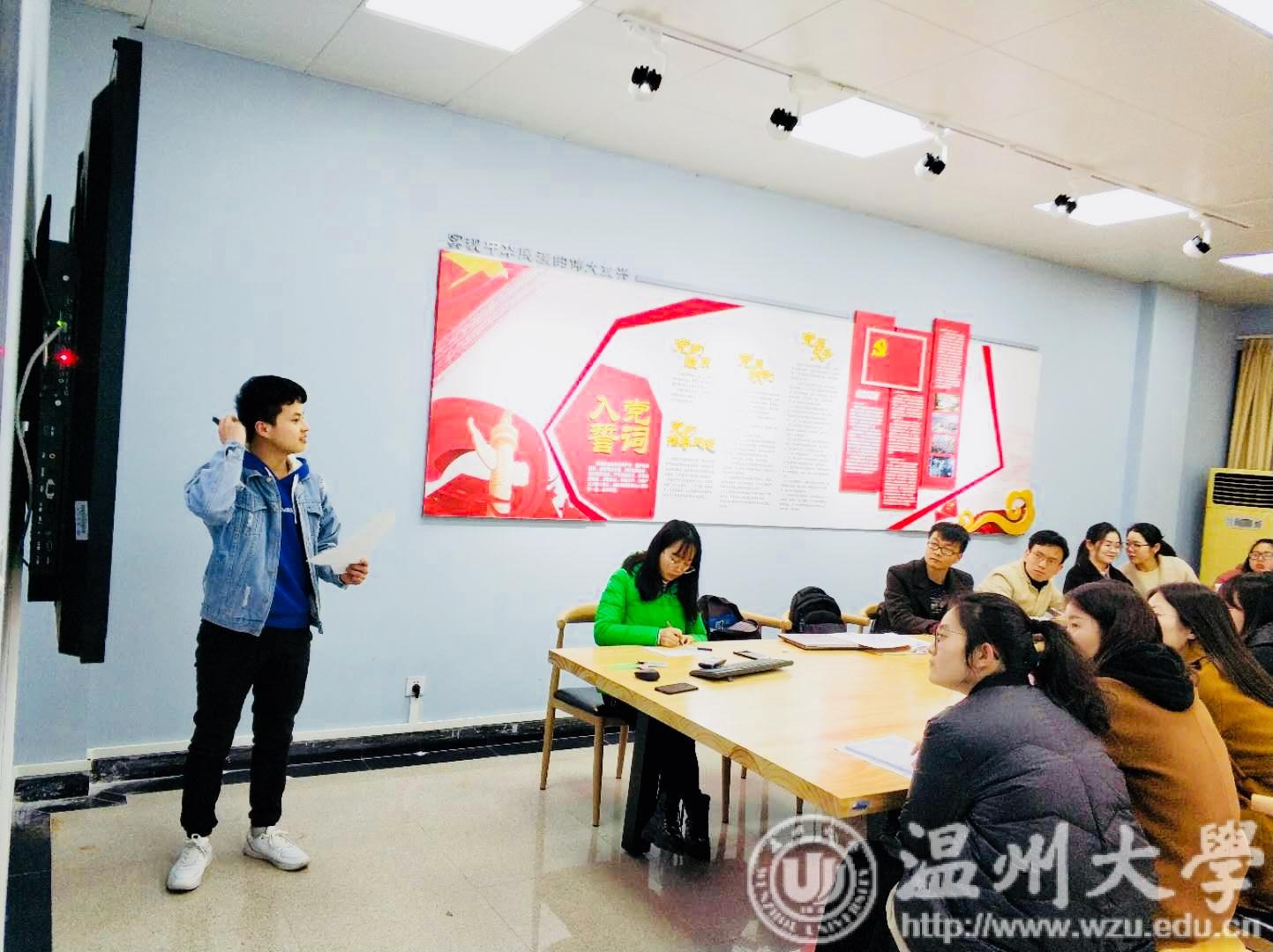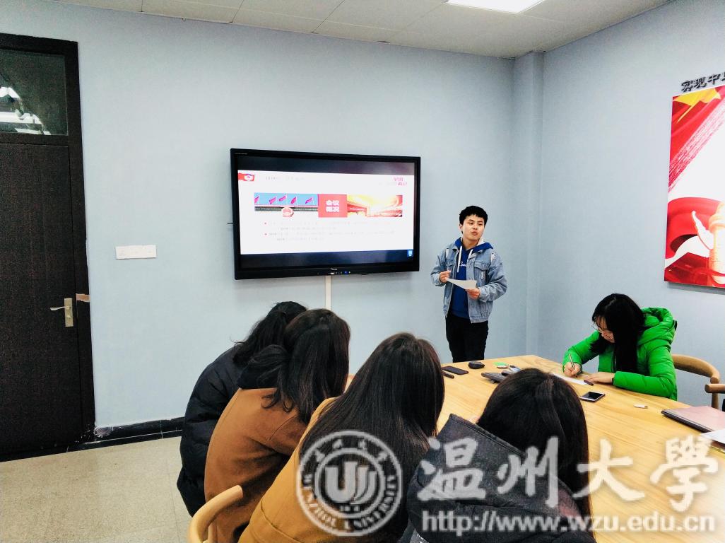 2019年3月24日晚18点,财神捕鱼 学生第一党支部于党员之家开展全国两会政府工作报告微党课学习,本次学习由支部书记李林军主持,宣传委员曾文斌进行宣讲。