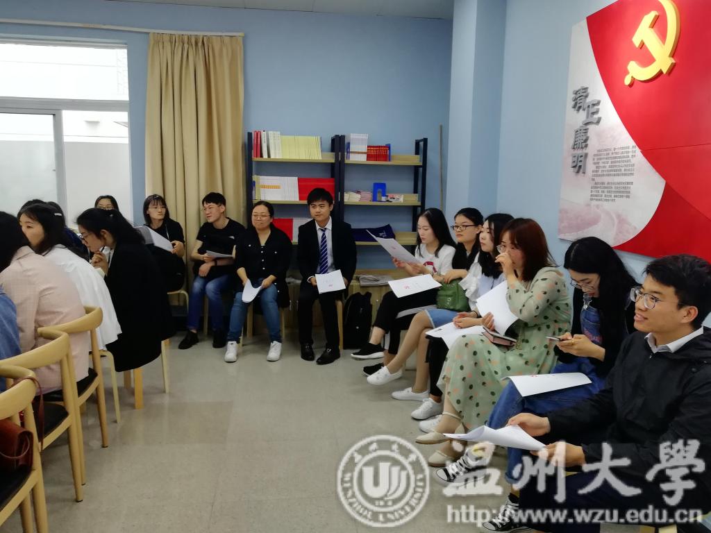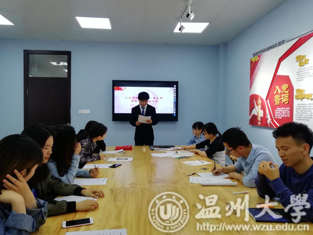 2019年5月5日晚,财神捕鱼 学生第一党支部于北校外语楼党员之家221会议室讨论了关于接收曹清清等10位同志为中共预备党员的党支部大会。本次会议由支部书记李林军主持。