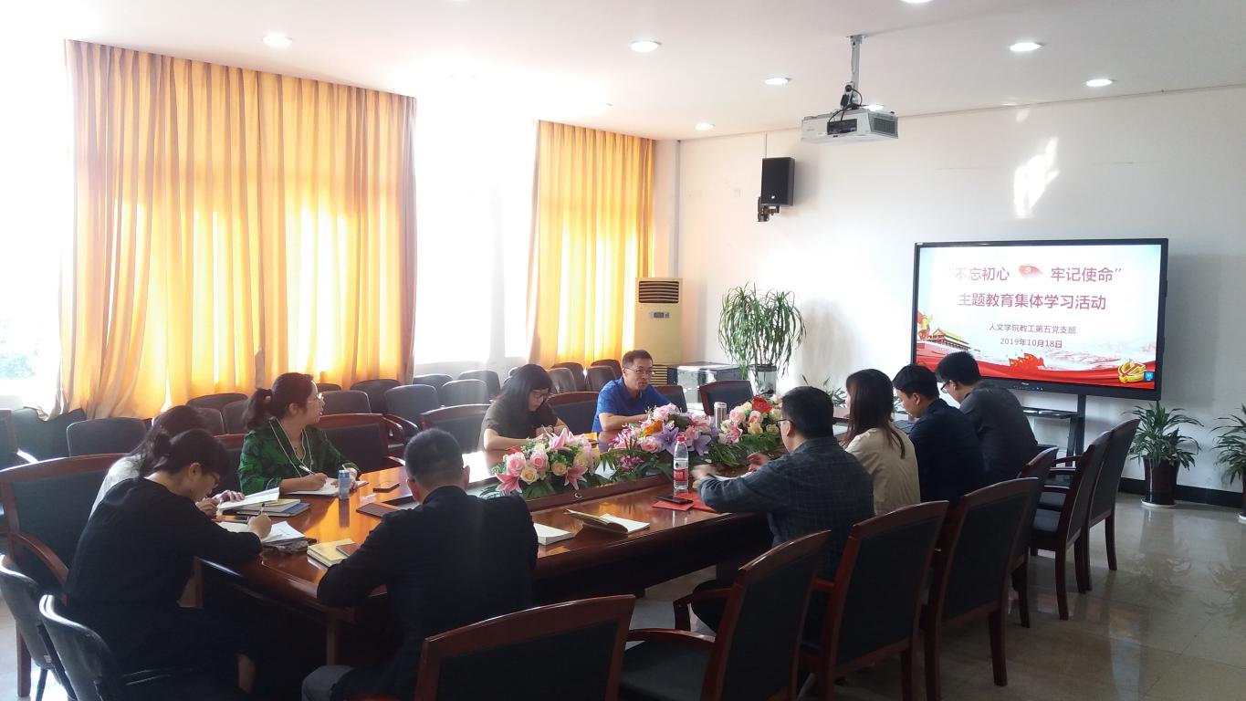10月18日上午,财神捕鱼 教工第五党支部在北校人文楼213会议室开展了“守初心担使命”主题教育视频集中学习会。活动由党支部书记魏一主持,支部全体成员参加。