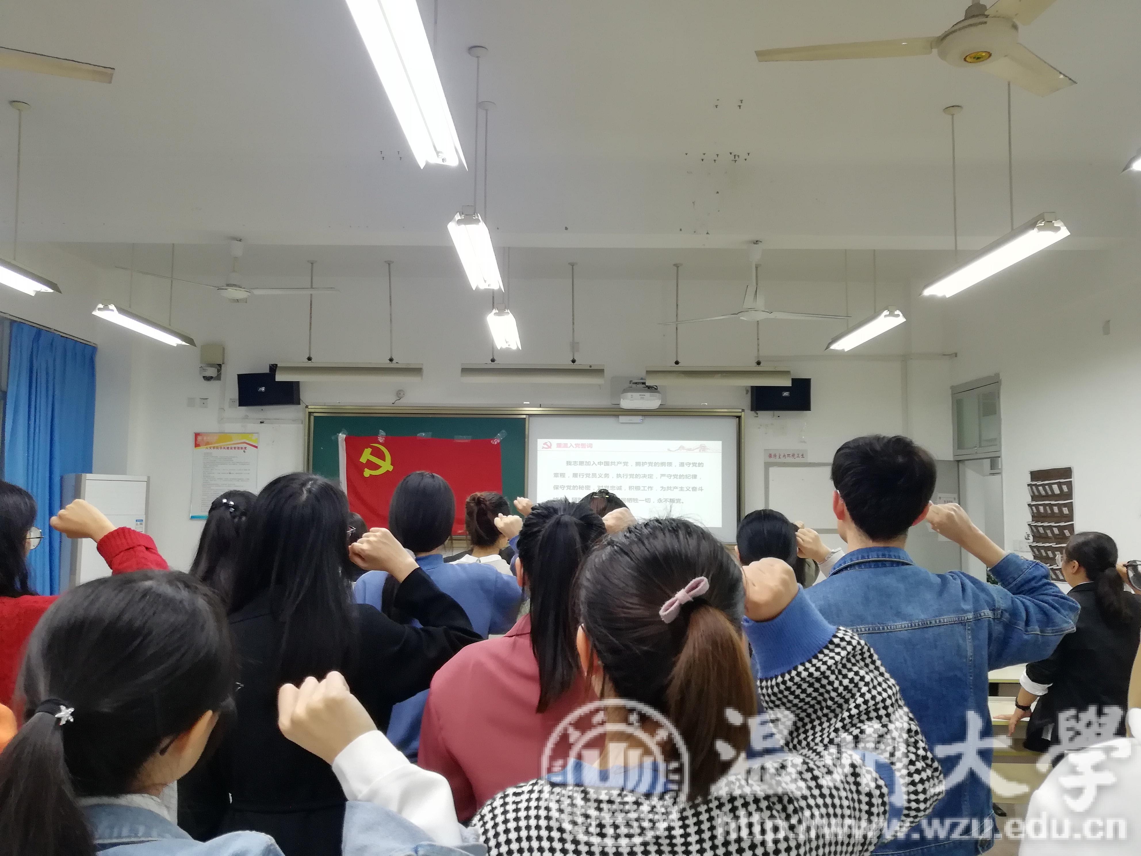 2019年11月7日,财神捕鱼 学生第一党支部于人文楼303教室召开“四重四敢”主题党日活动,会议由支部书记李林军主持。