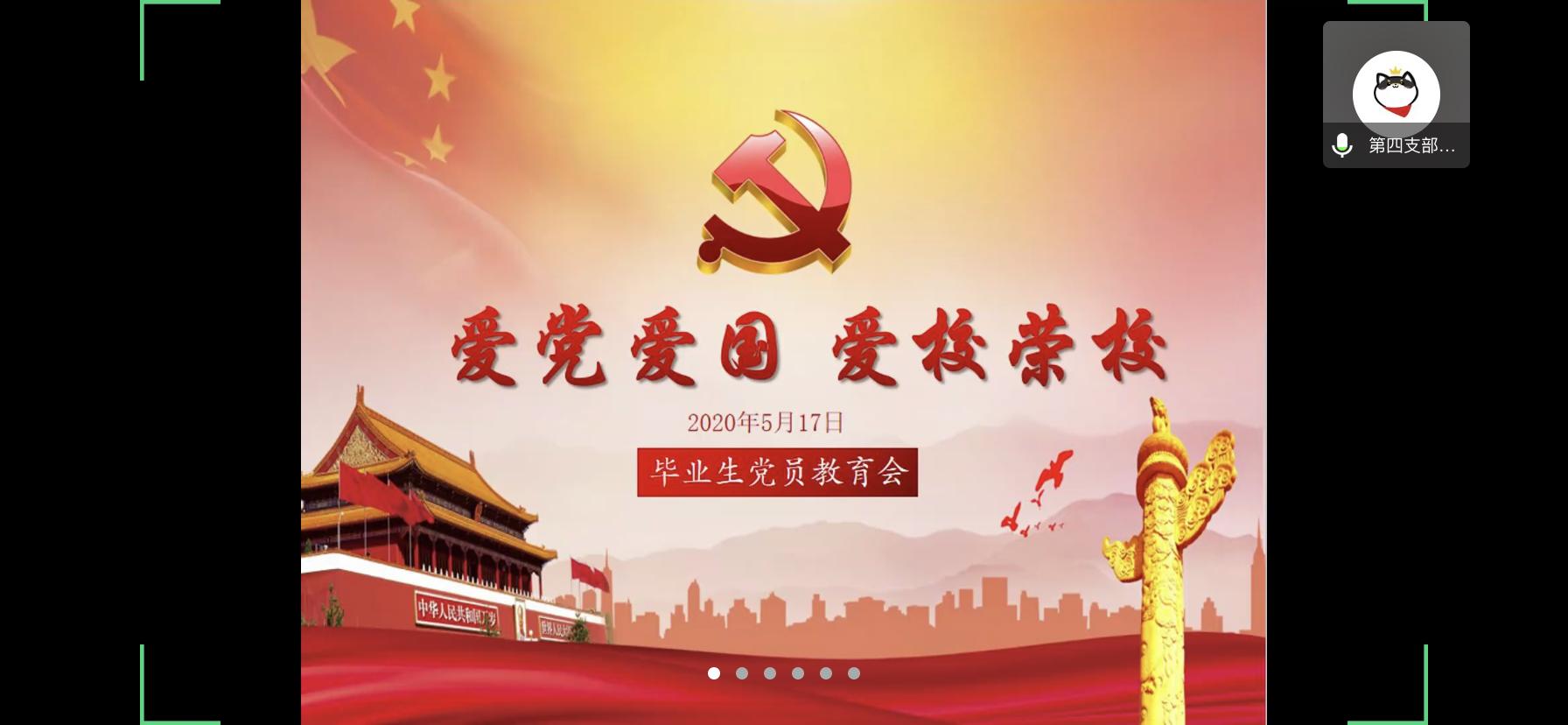 2020年5月17日下午4:30,财神捕鱼 学生第四党支部的二十一位同志通过线上分享会的方式,参与了以“爱国爱党 爱校荣校”为主题的毕业生党员教育会。在优秀毕业生党员同志的感受与经验分享过程中,与会的各位同志都感到受益匪浅。