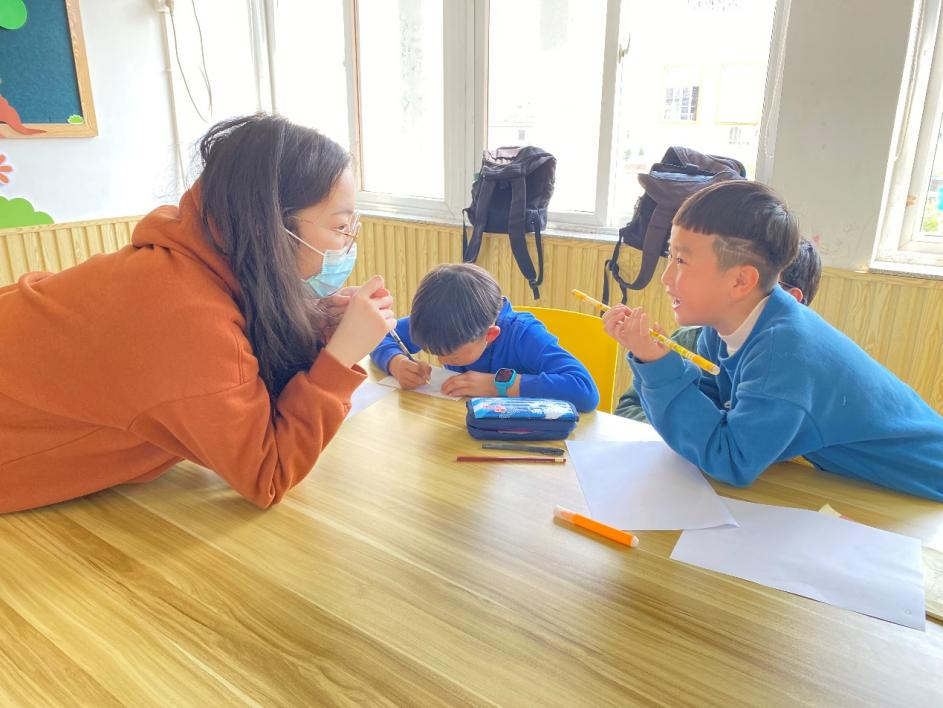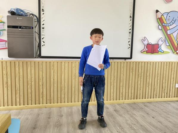 草长莺飞四月天,三角梅阵阵飘香,正如孩子们天真烂漫的笑脸。这一回,党员志愿者们准备的第一项活动就是带着孩子们一同谱写故事的新乐章。为了让故事新编游戏进行得更加顺利,党员志愿者们耐心细致地启发孩子们开动小脑筋,一个个奇思妙想的故事从孩子们的口中蹦出。教室里,12个孩子三三两两地自愿成组,每组配备两位志愿者共同完成故事新编。一边竭尽全力苦思冥想,一边欢声笑语不断,创新思考脑洞大开的过程轻松且愉悦。创作的火花不断闪现,在三四年级小朋友们的小脑瓜里有盘古开天辟地的“褐色墨水”与女娲造人的混合进阶版;也有小红帽和红太狼与白雪公主的后妈毒苹果以及遇到白马王子的联动;还有也有十分贴切现实生活的一面,大灰狼是被巨额的红包索取而致破产露出马脚。后羿射日与牛郎织女的故事也得到了漫画形式的再演绎。孩子们克服恐惧,走上台前,大胆地讲述自己的故事,欢笑声与鼓掌声在教室上空阵阵回荡。