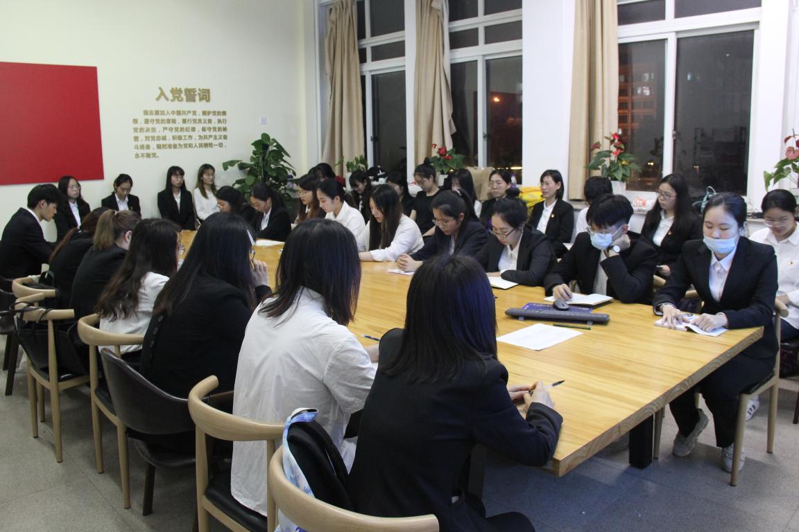 会议结束后,18、19级预备党员进行了简短的分享会,先是楼晨晨同志朗读了《给19级全体预备党员的一封信》,再是张钰同志、裘冰欣同志等预备党员总结了近期党员生活以及工作情况,并表达了对19级全体预备党员的期许。