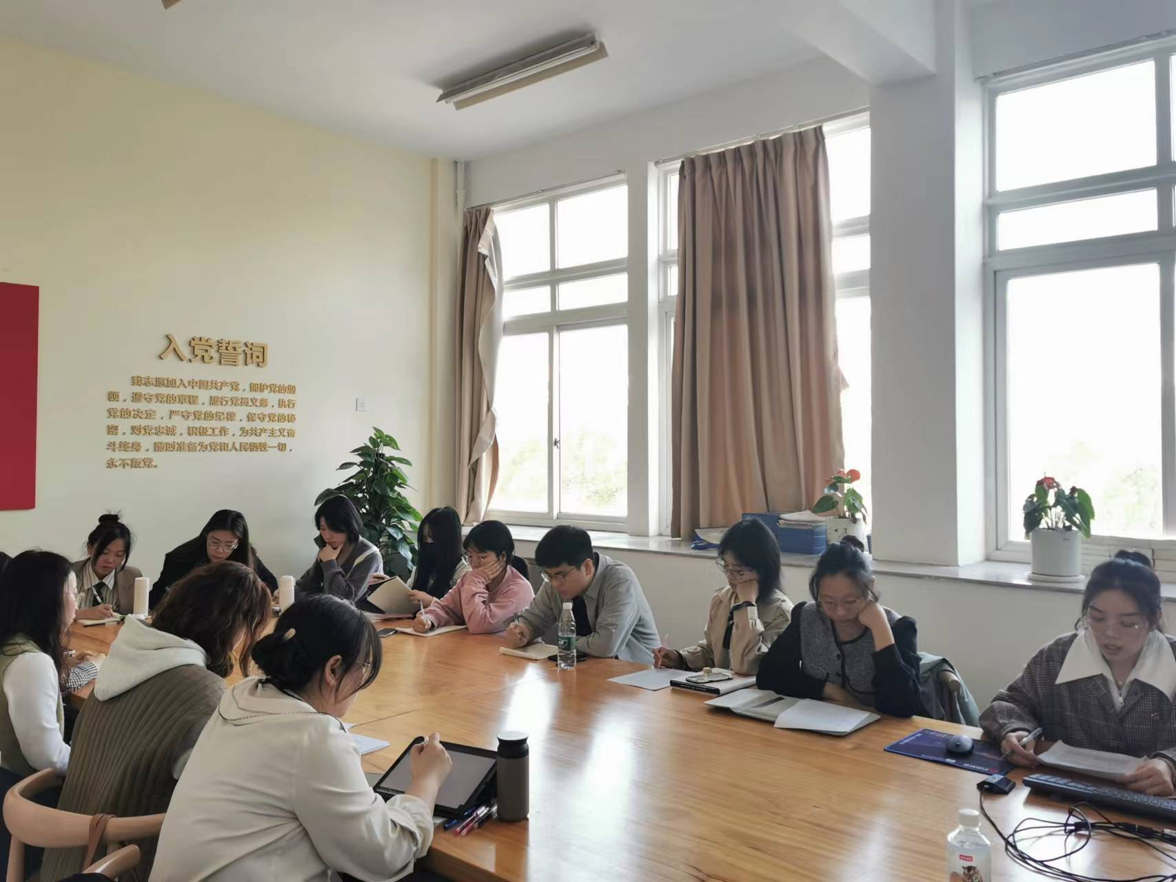 在深入浅出的讲解后,支部党员同志们对党的二十大报告有了更加深入的认识,对党中央的行动方略、自身的实践计划有了新的思考。各个党小组的同志们发言踊跃,如陆露露同志通过学习党的二十大报告认识到,要以实际具体的行动,参与进党的时代任务、历史使命中去。范文凝同志通过自身的学习,进一步认识到党的二十大报告的重大理论意义。郑靖雯同志结合国内外具体情况,阐明了党的理论优势、制度优势。