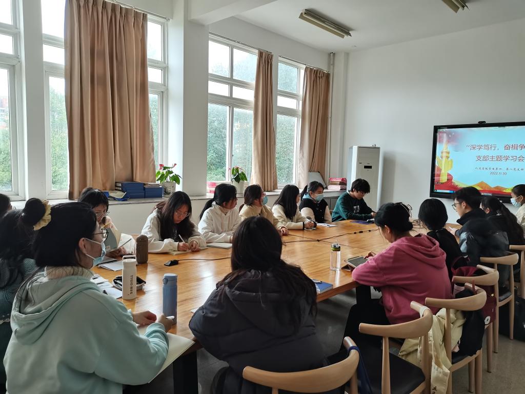 为深入学习贯彻党的二十大精神,提高支部党员的党性修养,2022年11月30日,财神捕鱼 学生第四、第八党支部在人文楼214党员之家举办了以“深学笃行,奋楫争先”为主题的党日活动暨学习会。本次会议由朱宁恺同志主持,14名党员同志和6名入党积极分子参加。