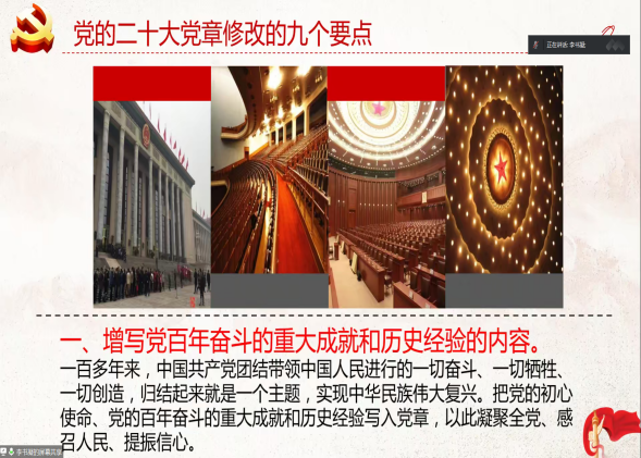 在心得分享环节,三位党员代表分享了自己的学习感悟。潘若颖同志结合自身情况,从党的理论制度创新、国家事业发展概况、党建新征程三个方面,分享了党的二十大对党章进行修改的理论与现实意义。李书凝同志从所学专业的角度,发表了对党章修改内容的见解,认为学生党员在不断提升自我修养和专业学识的同时,还要积极投身到教书育人中去,加强对中小学生“爱国主义”的教育。方雨婷同志重点分享了百年来党章的发展历程,强调学生党员要自觉学习党章,将新党章中的各项规定要求落实到行动上、体现在工作中,作为一名即将踏上社会的“新闻人”,应主动向身边的优秀党员学习,为建设新时代全媒体人才做出应有的贡献。