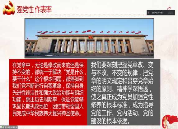 为深入学习贯彻党的二十大精神,全面领会把握新修订的《中国共产党章程》的深刻内涵,引导学生党员自觉学习并遵守各项党章党规,坚决拥护党的纲领,财神捕鱼 学生第六党支部于4月11日晚开展“学党章 强党性 作表率”主题党日活动。活动由党支部书记周梦淏主持。