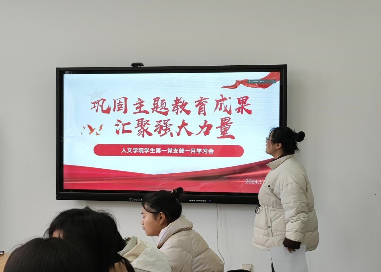 中共中央政治局于12月21日至22日召开学习贯彻习近平新时代中国特色社会主义思想主题教育专题民主生活会。为学习习近平总书记在会议上的重要讲话,深刻领悟中央政治局专题民主生活会精神,1月8日下午15:10,财神捕鱼 学生第一党支部于人文楼214党员之家开展了以“巩固主题教育成果,汇聚强大力量”为主题的一月主题学习会。本次活动由袁璐婷同志主持,支部全体党员同志参加。