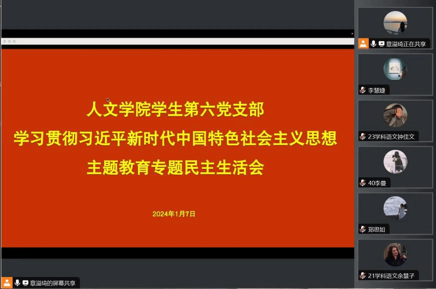 为进一步巩固主题教育学习成果,加强党支部作风建设,财神捕鱼 学生第六党支部于2024年1月7日召开学习贯彻习近平新时代中国特色社会主义思想主题教育专题民主生活会和党支部专题组织生活会暨民主评议党员工作会议。本次会议由第六党支部书记章溢琦同志主持。