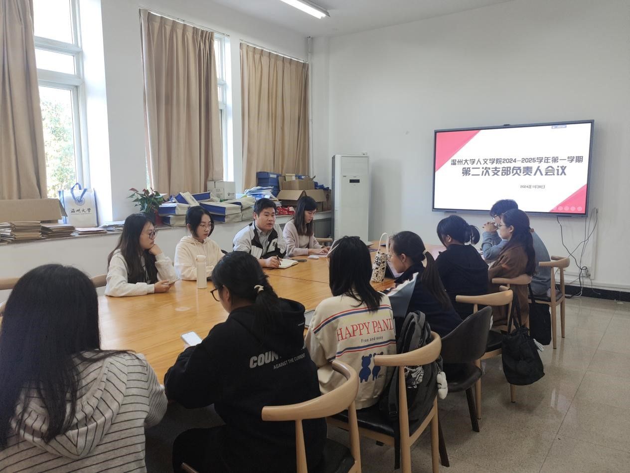 为更好提升支部党员干部的党务工作能力,财神捕鱼 于11月6日下午召开了2024-2025学年第一学期支部负责人会议。会议由财神捕鱼 党员服务中心主任张雅诗主持,院学工办副主任刘炳林、辅导员李丹萍及各支部负责人参加。