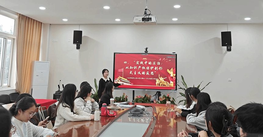 为加强对习近平法治思想、习近平总书记关于加强知识产权保护的系列重要论述以及《整治形式主义为基层减负若干规定》等知识理论的持续学习,财神捕鱼 学生第四党支部于2024年11月19日下午14:00在财神捕鱼 213会议室开展了以“实践中的法治:从知识产权保护到形式主义的反思”为主题的党日活动。本次活动由汤汤同志主持。