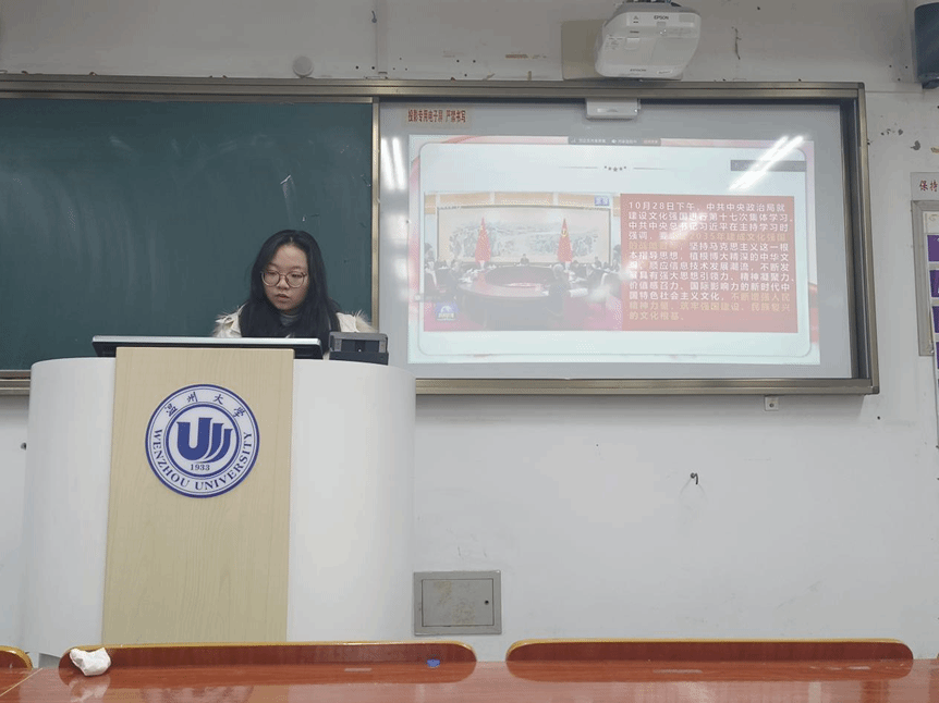 与会同志一致认为,要锚定2035年建成文化强国的战略目标,坚持马克思主义这一根本指导思想,植根博大精深的中华文明,顺应信息技术发展潮流,不断发展具有强大思想引领力、精神凝聚力、价值感召力、国际影响力的新时代中国特色社会主义文化,不断增强人民精神力量,筑牢强国建设、民族复兴的文化根基。作为学生党员,应深入学习中华优秀传统文化,积极参与校园文化活动,如文化讲座、校园文化节等,通过志愿服务、社团活动等方式,为校园文化阵地提供优质服务,丰富校园文化生活。
