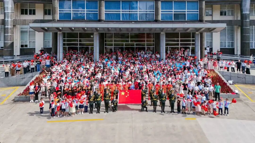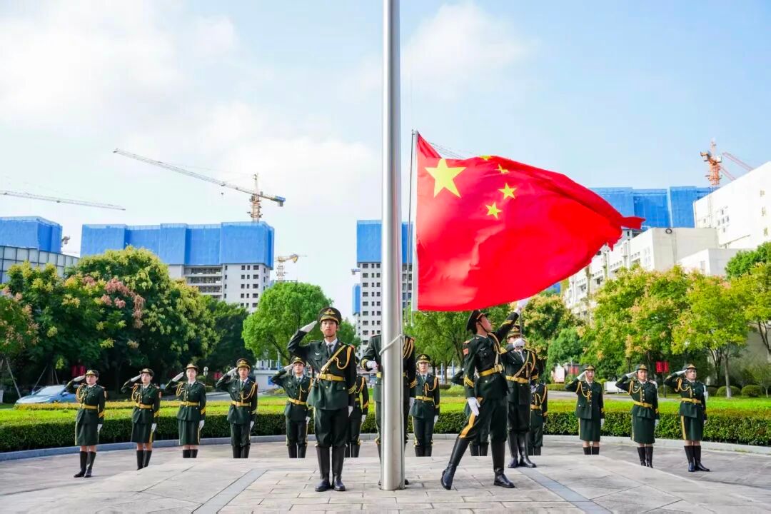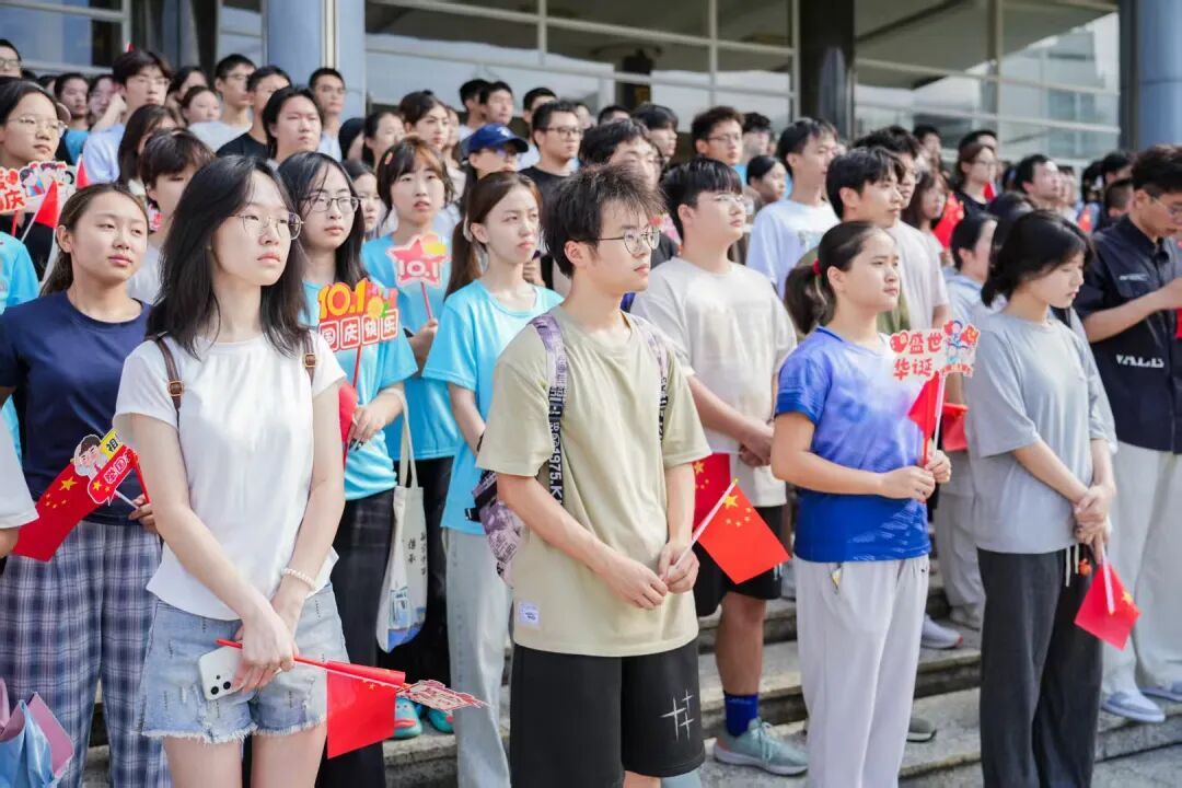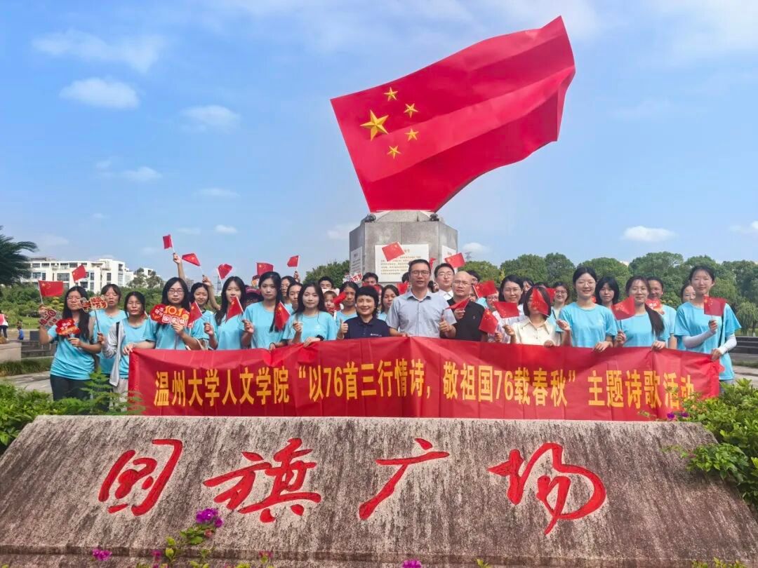 除了本次线上的情诗征集活动以外,财神捕鱼 的师生代表们一同参与了财神捕鱼 组织的新中国成立76周年暨抗战胜利80周年升旗仪式,并于南校区国旗广场前合影留念。