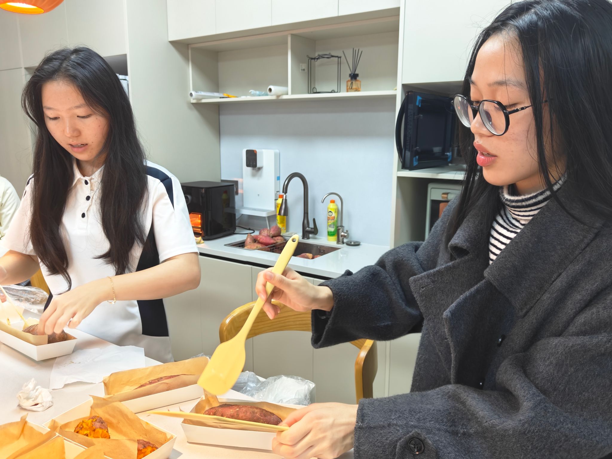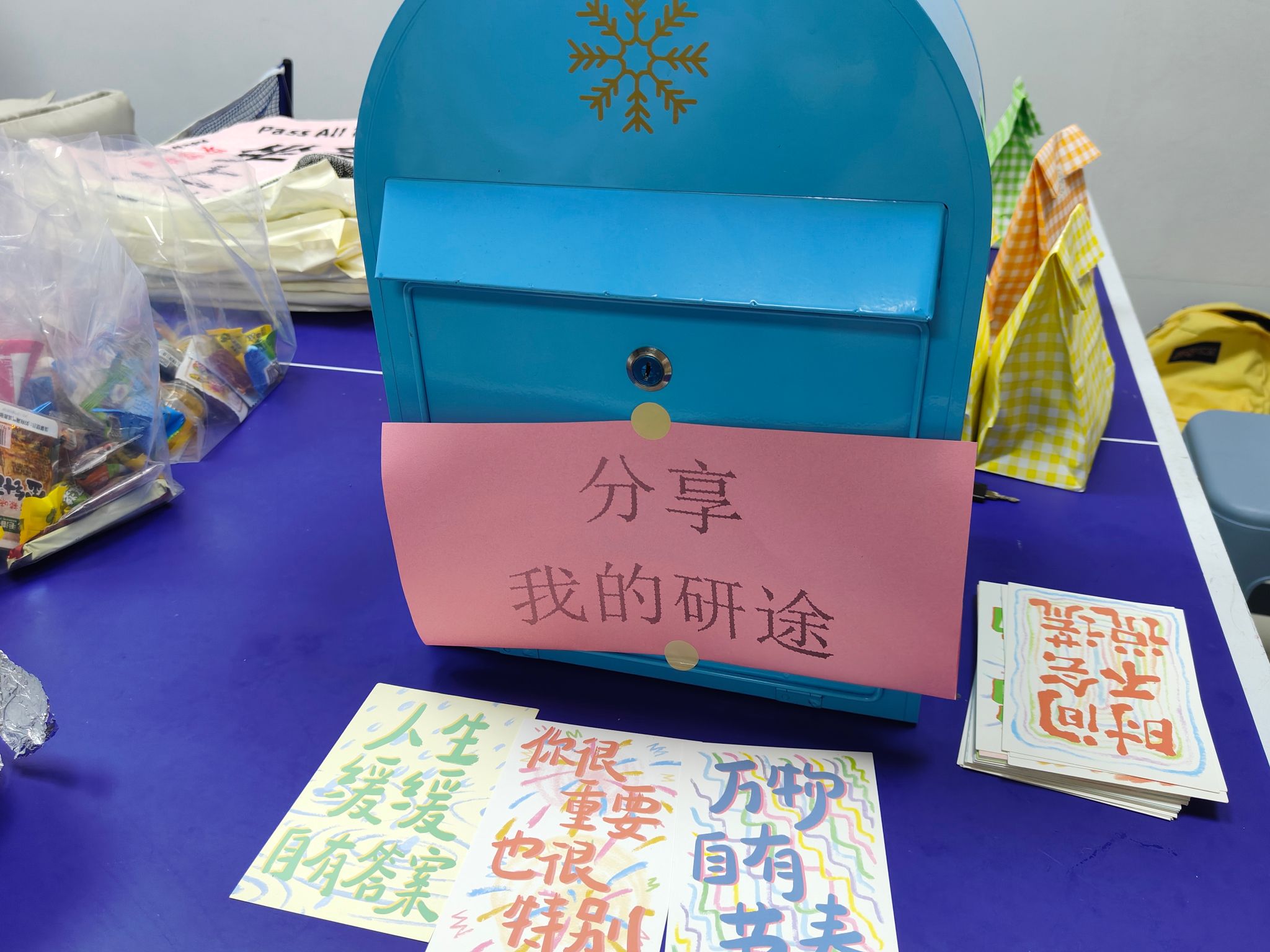 下午15:00,同志们提前抵达现场,积极投入活动准备。大家有条不紊地布置场地、整理物资;在烤红薯区亲手烤制、包装红薯,并在每一份包装上认真写下祝福与鼓励。同时,现场备齐了各类考研实用物资、暖心小蛋糕及心理健康小礼物,为后续慰问凝聚起满满的诚意与温暖。